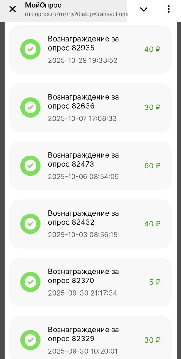 Платформа «Мой опрос» появилась в 2023 году и позиционирует себя как сервис для прохождения платных онлайн-опросов. На сайте «Отзовик» её средний рейтинг — 3.8 балла, при этом отзывы разделились примерно поровну: половина пользователей хвалят площадку, другая половина называет её мошеннической. Я решил проверить на личном опыте, можно ли здесь реально заработать. Процесс регистрации стандартный: Сразу после входа платформа предлагает заполнить анкету для точного подбора опросов. В моём случае анкета уже была заполнена — вероятно, данные подтянулись с другого сайта. За заполнение анкеты предусмотрено небольшое вознаграждение. Первый опрос: Оплата и вывод средств: + Высокие расценки за прохождение — в среднем 40–50 рублей за опрос. + Удобные способы вывода (карта, СБП). + Если вам отказывают в прохождении, сайт начисляет утешительные 5 рублей. - Мало опросов (в день доступно не более 3 опросов, иногда опросов нет вообще). - Отсутствие реферальной программы. - Постоянные технические пр