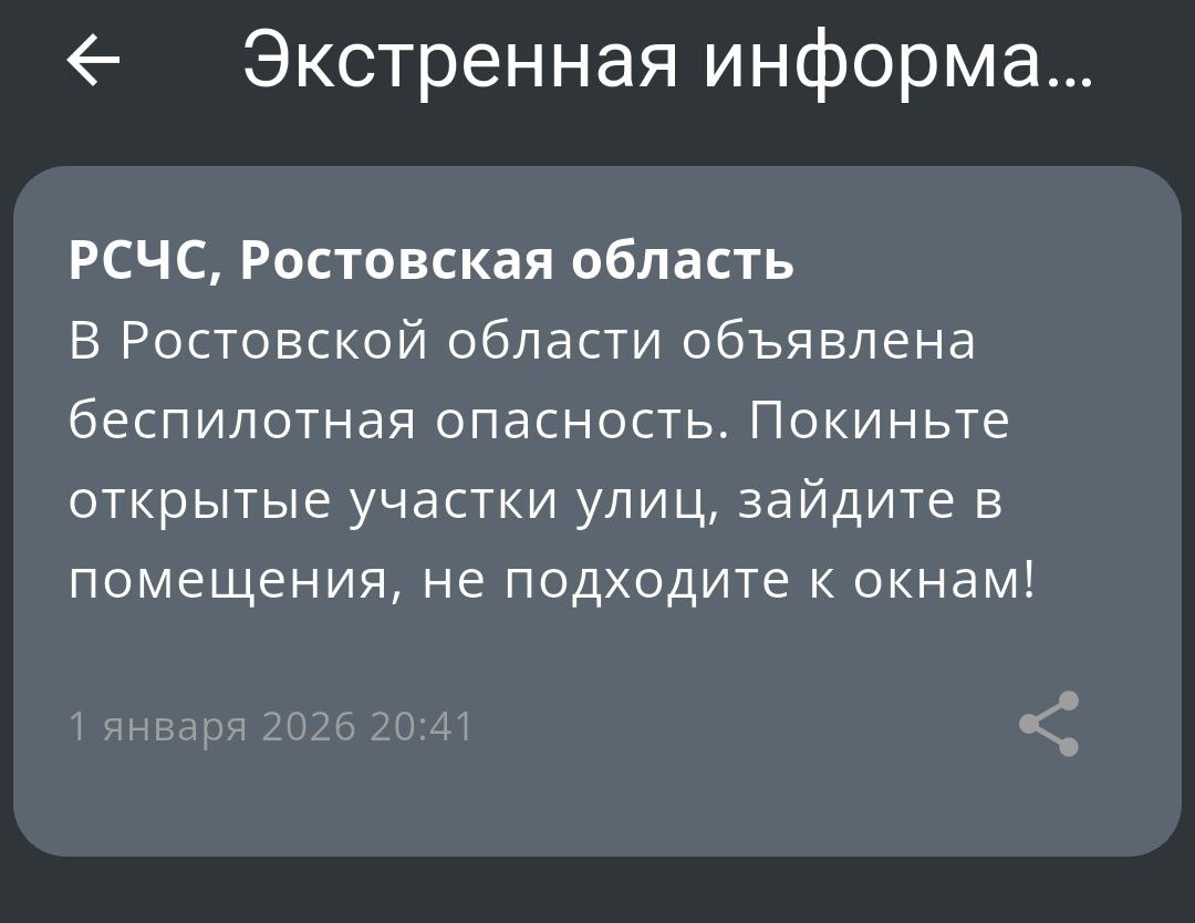 ‼️Экстренная информация РСЧС: В Ростовской области объявлена беспилотная опасность.