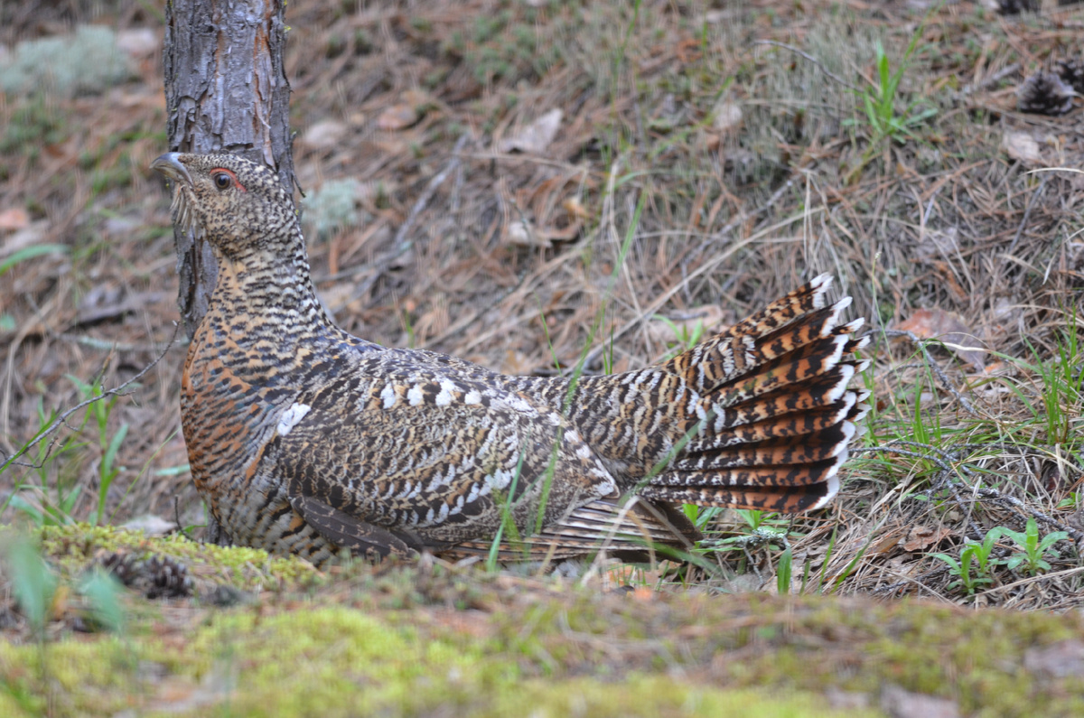 По-разному работают инстинктивные программы в момент насиживания яиц, и в момент сопровождения выводка. В первом случае, глухарка защищает кладку только пассивно - сидит, как говорится, до последнего, на гнезде, прикрывая кладку, и надеется только на свою маскирующую окраску. Если хищник все же случайно оказался рядом, происходит внезапный "взрыв" у него под носом, который напугает кого угодно, и птица улетает прочь. И это не попытка отвести от гнезда, тем не менее неопытный хищник, опомнившись, бросается вдогонку, ловить, а опытный довольствуется яичницей. А вот в случае с птенцами ситуация выглядит совершенно по-другому – глухарка уже очень сильно рискует собой, чтобы уберечь потомство, "вызывая огонь на себя". Вот как выглядела ситуация, когда я оказался в роли потенциального хищника. Я осматривал очередной песчаный увал в поисках нор барсука. В молодых посадках сосны я заметил бегущее мне наперерез низкорослое животное. При приближении я разглядел, что это глухарка?! Пробежав еще