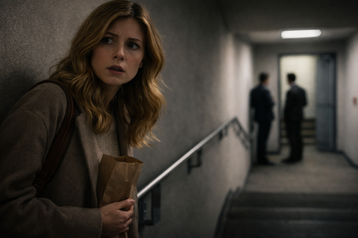Там было холоднее. Серые стены. Металлические перила. Тишина, которая живёт только в офисных лестницах: не домашняя и не улицы — такая, где каждый шаг слышен как признание.