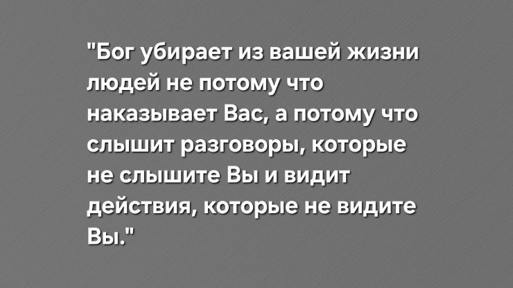 Но именно эта боль дала мне самое главное понимание: те, кого теряю, были нужны не мне, а моим старым привычкам жить для других. Именно Бог послал мне испытания, показывая настоящее лицо каждого человека. Да, терять близких трудно, больно и грустно, но теперь я точно знаю, что моя душа свободнее, чище и готова принять новых, настоящих друзей.
