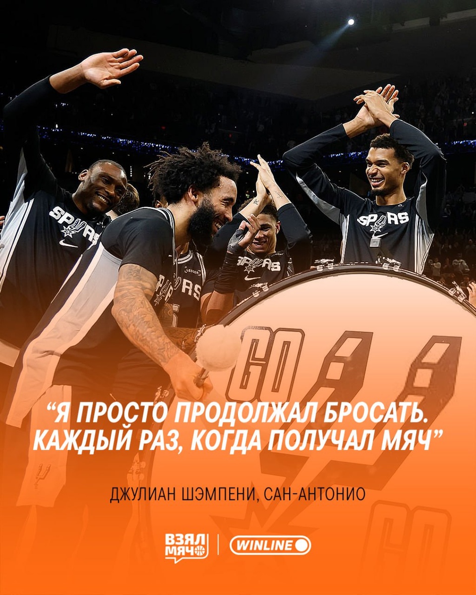 «Сан-Антонио» вытащил сумасшедший матч против «Нью-Йорка» (134:132), а главным героем стал Джулиан Шэмпени. 🔸 11 трёхочковых — клубный рекорд «Спёрс» 🔸 36 очков — лучший матч в карьере 🗣 «Я просто продолжал бросать. Каждый раз, когда получал мяч — бросал. Расслабился. Получил — бросай, не получил — играй в защите. Когда я приехал из Филадельфии, не знал, что будет дальше. Шансов закрепиться было немного, дорога была долгой. Но я всё ещё здесь — значит, пора показывать результат. Тяжёлые отрезки бывают у всех снайперов, но партнёры и тренеры верят в меня — и это даёт уверенность». У «Спёрс» каждый игрок может вытаскивать матчи? 👀 🏀 ПОДПИШИСЬ — ЗДЕСЬ ЖИВЁТ БАСКЕТБОЛ!
