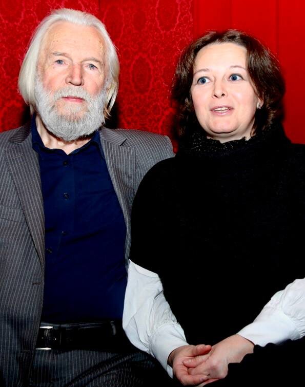 Известно, что познакомились они во время гастролей, а разница в возрасте - примерно 25 лет. Сам актёр говорит, что рядом с молодой женой чувствует себя моложе.