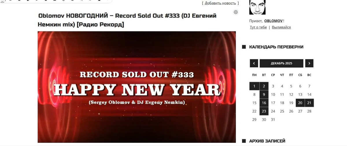 С НОВЫМ ГОДОМ!🎅 Слушай и смотри запись вчерашнего Новогоднего Эфира у нас на сайте! Вот прямая ссылка https://oblomov.ucoz.ru/news/oblomov_novogodnij_record_sold_out_333_dj_evgenij_nemkin_mix_radio_rekord/2025-12-23-1655 🔊
