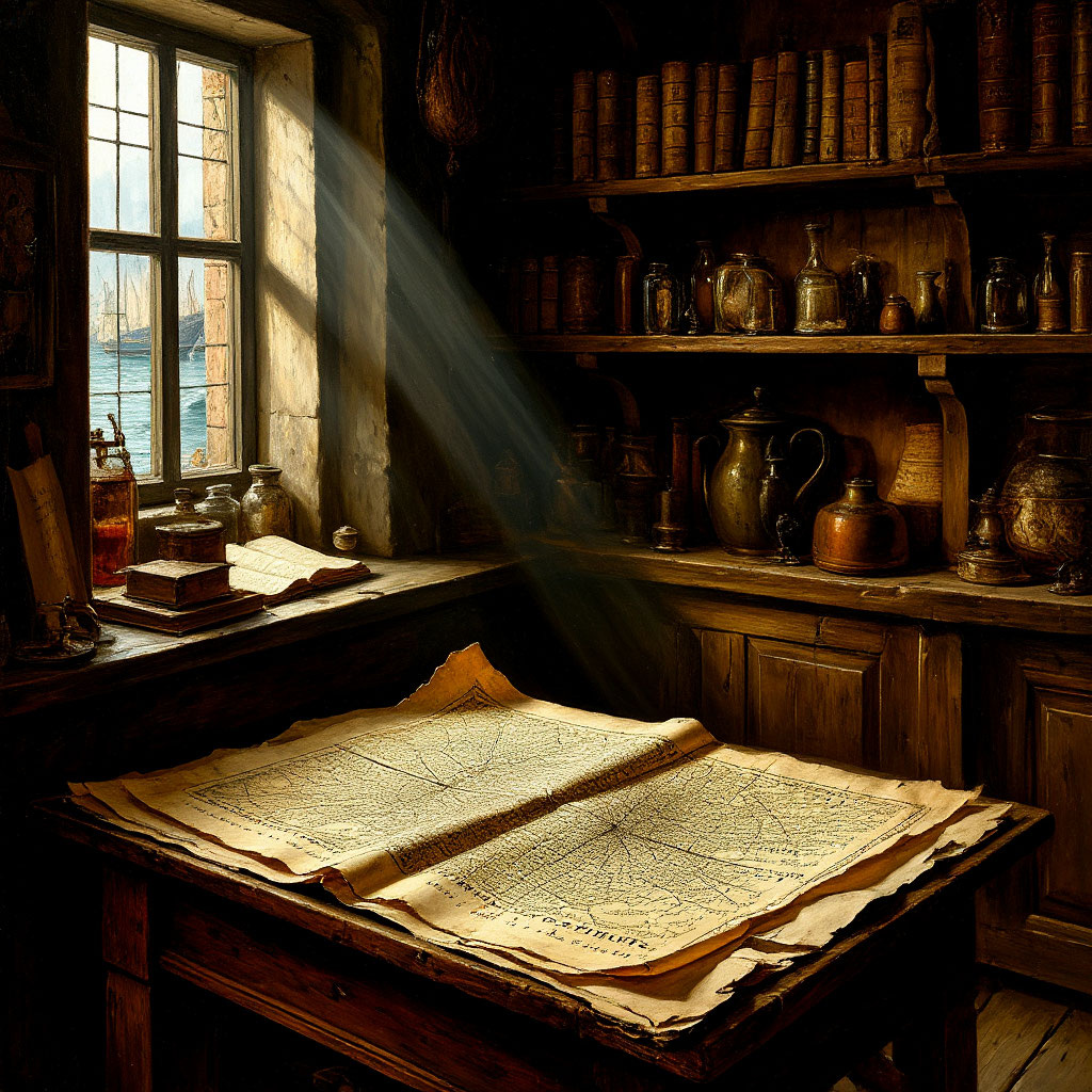 — Тебе. И только тебе, — проскрипел он. — Ищешь не земли, а тишины. Она здесь. Развернув пожелтевший пергамент, Жюльен ахнул. Это была навигационная карта невиданной точности. Но вместо названий земель и мелей на ней были