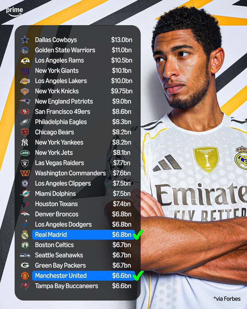 Топ-25 самых дорогих спортивных команд в мире за 2025 год по версии Forbes.