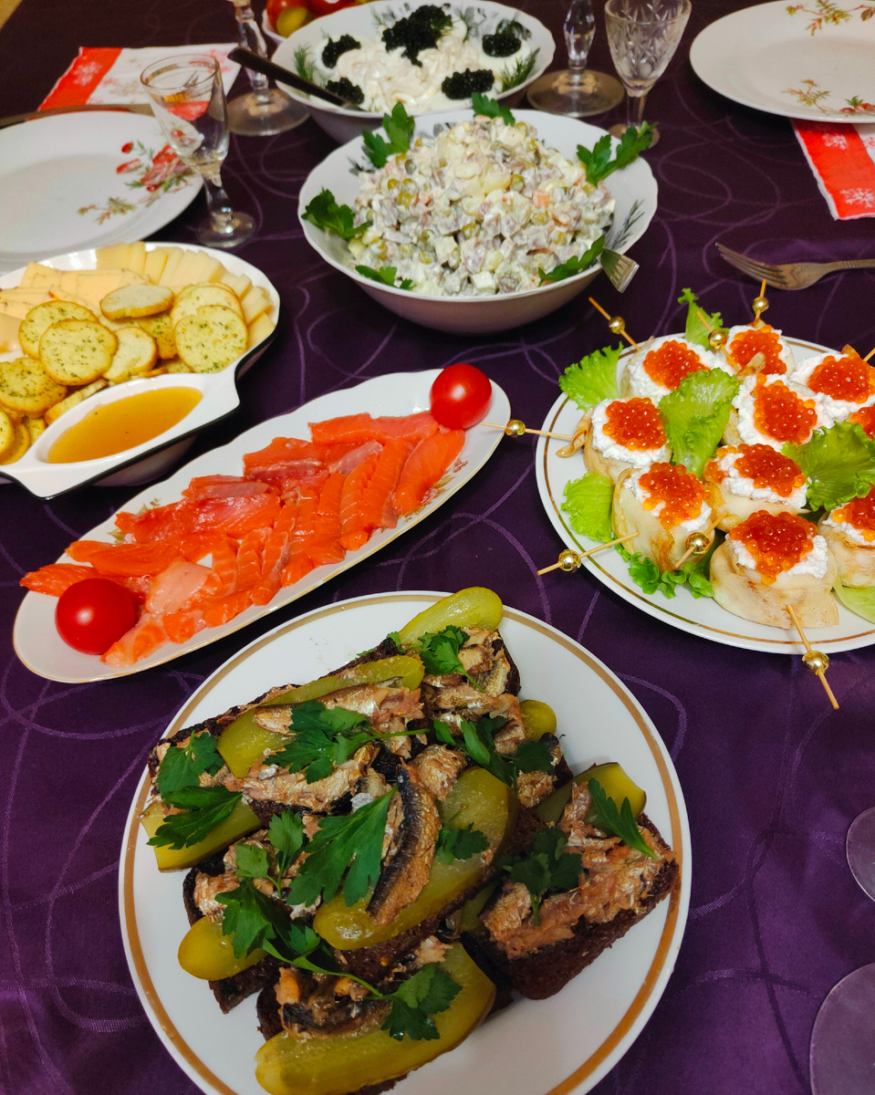 Итак, вот такой стол у нас был вечером 31 декабря (на четверых):