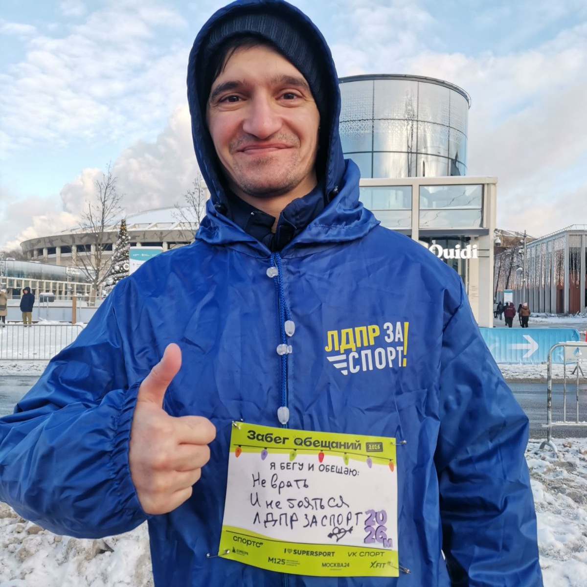 2026 год, 2026 м. Москва, Лужники. Дистанция пройдена и обещание дано. В лёгком темпе в компании единомышленников. Несмотря на морозное утро преодолении дистанции прошло комфортно. Старт забегам в новом году дан. Может пришло время для покорения и марафона🫣🤔 ЛДПР - за Спорт! #ЛДПР #ЮВАО #БагянСергей #ЗабегОбещаний