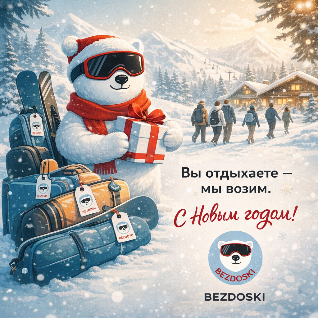 ! ⛷️🏂 Пусть в новом году будет больше гор, снега, ярких поездок и моментов, когда можно просто наслаждаться отдыхом — без лишних забот и тяжёлого багажа ☃️ Спасибо, что доверяете нам самое важное — ваше снаряжение и комфорт в путешествиях. Обещаем и дальше делать всё, чтобы вы отдыхали налегке, а мы брали на себя всю логистику 🚡 До встречи на курортах! С теплом и заботой, BEZDOSKI 🐻❄️ Вы отдыхаете — мы возим