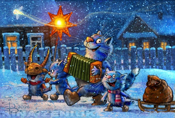 С Рождества Христова, с 7 января начинаются Рождественские святки, заканчиваются они Крещением Господним 19 января! На святочную неделю выпадает и наш знаменитый русский праздник Старый Новый Год! Синие коты Рины Зенюк не могут остаться в стороне от этих событий! Со Старым Новым Годом!!! Не забывайте заходить и подписываться на мой канал! Берегите себя и своих близких!