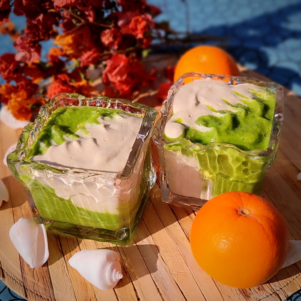 Итак, вдохновившись прошлым удачным опытом с амарантом, решила сделать смузи из киноа. Тоже получилось очень неплохо. Даже, прямо скажем, отлично! Консистенция вышла очень кремовая, похожая на растаявшее мороженое... ⠀ Кремовый слой. Перемалываю в блендере киноа, замороженные кусочки банана до гладкой консистенции, половину апельсина. Добавляю половину банана, груши и фиников и еще раз все хорошо взбиваю. Отливаю в бокалы, оставив немного смеси в блендере. ⠀ Зелёный слой. Добавляю в блендер зелень и все оставшиеся ингредиенты и тоже хорошо перемалываю. ⠀ Доливаю в бокалы сбоку. ⠀ Пробуйте!