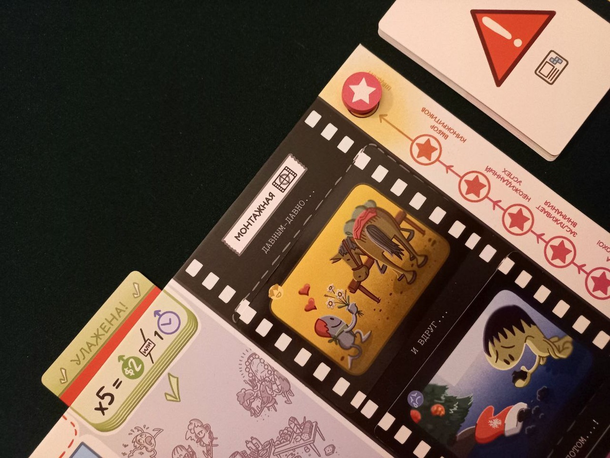 Играть надо каждый день в течение НГ-каникул в разные настолки, которые будут подходить под условия челленджа. Задание 1. Сыграть в игру, где изображён символ года – лошадка. Карточку с лошадью я нашла у себя в игре «Камера! Мотор!», что приятно вдвойне – у меня появился повод ещё раз сыграть в эту потрясную новинку. Главная цель – снять фильм по раскадровке и определённому сценарию так, чтобы лента стала либо шедевром с кучей зрительских симпатий, либо странным арт-хаусом и провалилась в прокате. У каждого игрока есть своя роль. Можно быть, например, режиссёром, оператором, гримёром и даже каскадёром. У съёмочной группы ограничены бюджеты и сроки. В каждом раунде наваливаются неприятности, типичные для производственного ада, которые нужно вовремя разгуливать. На помощь приходят карты идей и способности на планшетах игроков. Коробка от игры сделана в форме хлопушки, внутри есть ппц какой удобный органайзер для карточек и деталюшек в виде раритетной ныне бабины от плёнки, а всё, что