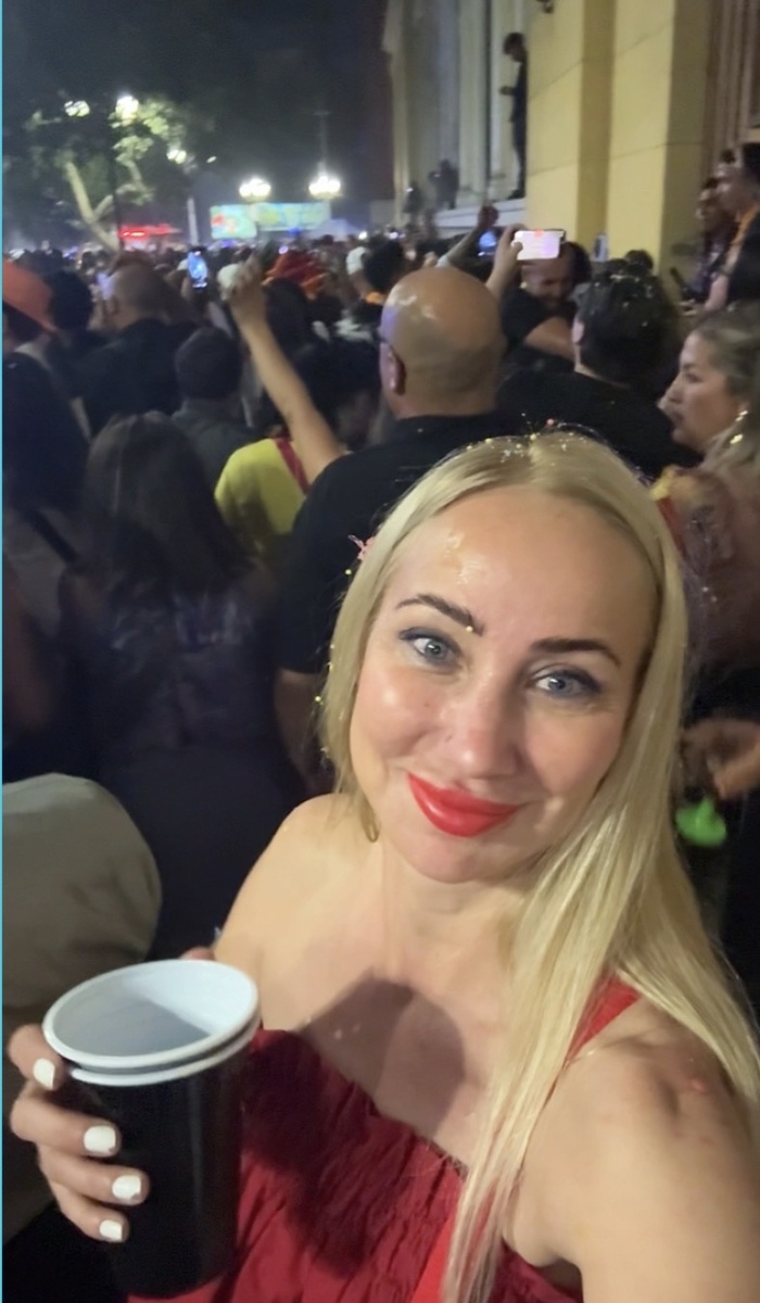 У меня был большой опыт встречи Нового года в самых разных местах. Я пила шампанское с итальянцами в Праге, встречала Новый год на Красной площади, в Германии, в Черногории, в позапрошлом году в Кисловодске мы танцевали под «Седую ночь» у Нарзанной галереи. Но я никогда не встречала Новый год на улице в Чили. Всегда это была либо вечеринка, либо ужин в гостях. Поэтому в этом году я решила — пора. Знакомые отговаривали: — Ой, ты что, это дурацкая затея! Там шум, хаос, всех поливают каким-то сладким сиропом… Кстати, зря я не прислушалась к словам про сладкий сироп. Мы оставили машину на одной из скромных улочек у метро Los Dominicos, надеясь, что уж в новогоднюю ночь никаких штрафов за неправильную парковку не будет, и поехали на метро в самый центр города. Метро уже выглядело любопытно: какой-то рыцарь в доспехах, нарядные девушки в вечерних платьях, мамы с детьми в карнавальных костюмах. На площади было уже не пробиться. Мы с мужем втиснулись между двумя семьями. Сбоку от нас стояла с