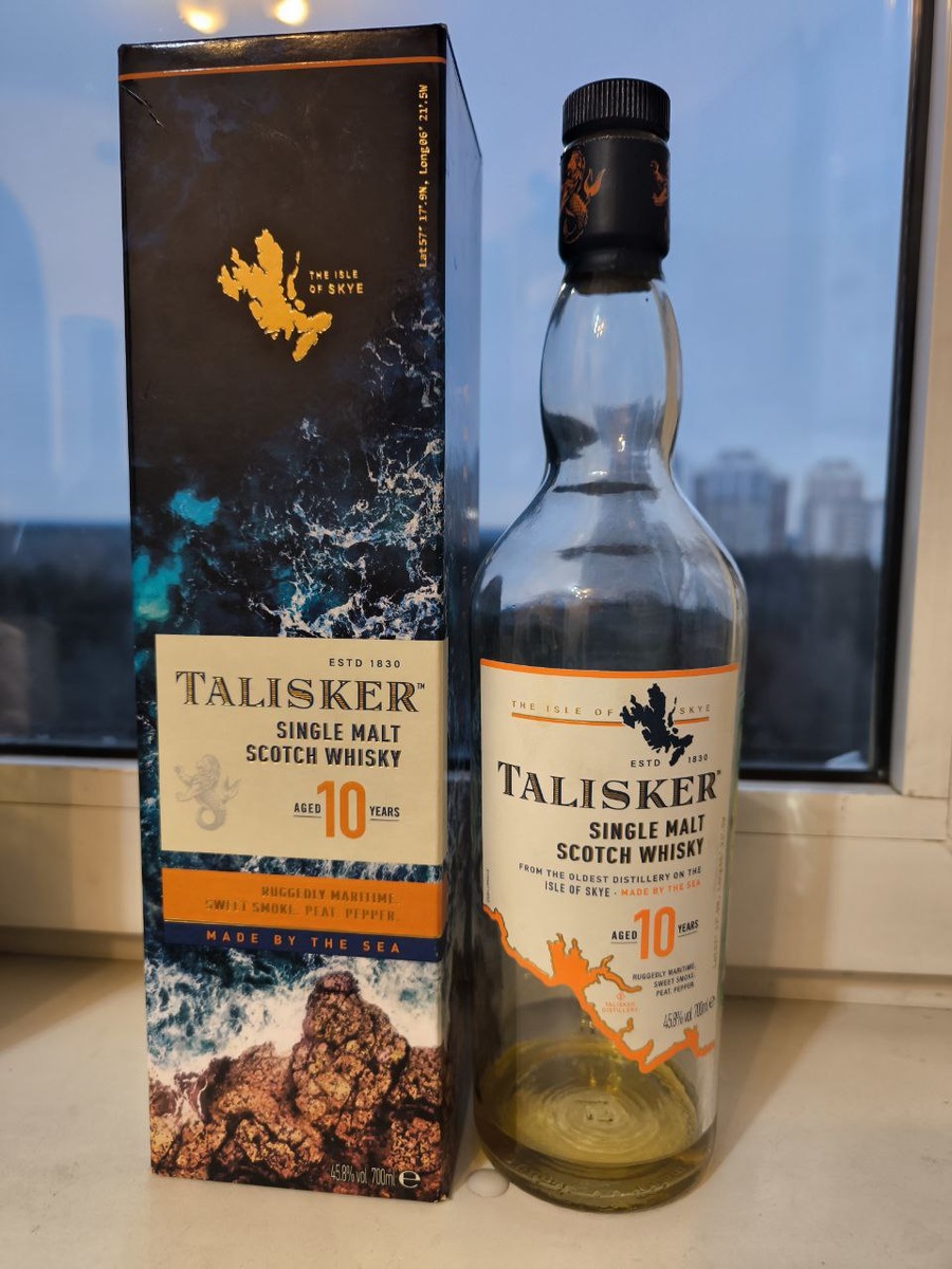 Пять лет назад и один месяц плюс на этом канале был опубликован следующий материал: https://dzen.ru/a/X8aDVajzOhA22w6M Сегодня мы пробуем десятилетнюю итерацию известного айловца, который никогда не подводил. Мой розлив - начала 24-го года. Самое время сравнить прошлое с настоящим (условно, конечно же, ведь уже 2026 на дворе). Упаковка была по стилю оформления более темная и глубокая, серьезная. Нынешняя ярче, больше пены, оранжевого, золотистой окантовки букв. Сама этикетка бутылки - в оранжевом окаймлении. Выглядит свежо - но всегда возникает вопрос, зачем эти обновления? Неужели это влияет на продажи?! Один из примечательных моментов состоит в том, что я пробовал лечиться тогда, 5 лет назад при помощи Талискера от начинающегося простудного заболевания. Не помогло, хотя и было интересно. Не используйте виски, "воду жизни", для лечения! Аромат: засахаренные апельсины в шоколаде, имбирь, что-то рождественское. Вкус: тягучая имбирно-перченая патока, шоколад, апельсин, захватывает! Непло