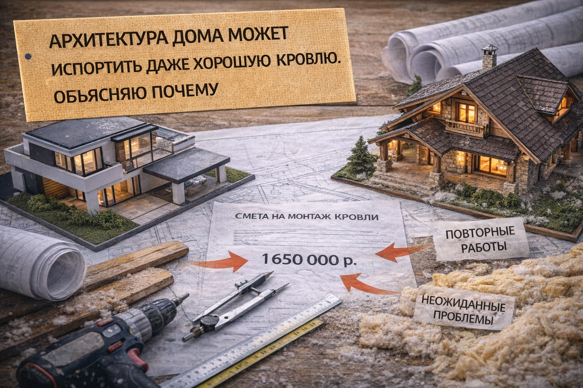 Потому что архитектура и кровля часто существуют как будто отдельно, хотя на самом деле они неразделимы. Красивая архитектура не гарантирует надёжную кровлю.