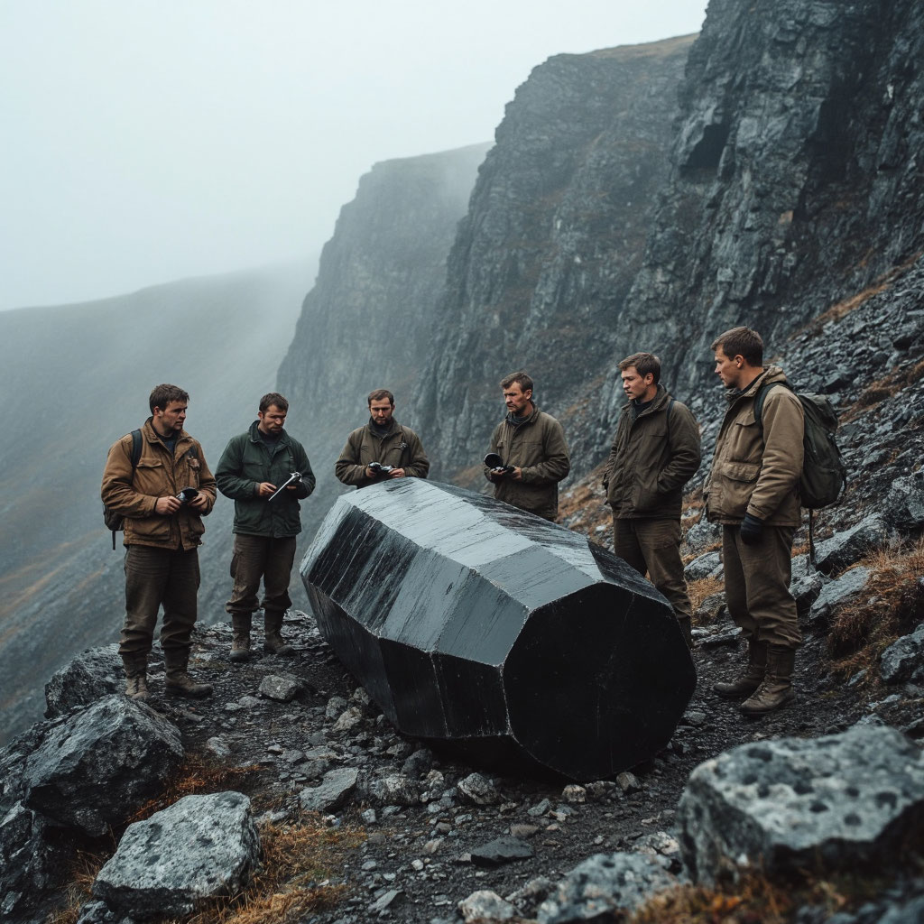 Он лежал в расщелине, наполовину засыпанный камнями. Вытянутая форма, идеально гладкая поверхность из чёрного металла, не похожего ни на один известный сплав. Длина — около четырёх метров, диаметр — чуть больше метра. Никаких швов, заклёпок или люков — словно отлит целиком. Металл был холодным на ощупь, но при ударе молотком издавал глухой, вязкий звук, будто внутри пустоты заполнены чем‑то густым.