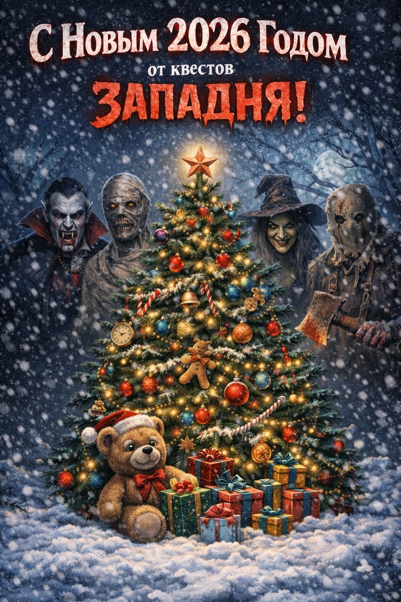 🎄🎉💥💫🍾☃️ Мы желаем вам, чтобы в новом году, у вас всегда была возможность найти время на развлечение, чтобы удача вам благоволила, чтобы настроение всегда было на высоте! Желаем яркого праздника и отличных зимних каникул, вместе с квестами Западня! ☃ Пусть 2026 принесет вам ярких впечатлений, крепкого здоровья, сильных эмоций и головокружительных приключений!! Квесты с актерами для взрослых и для детей ждут своих героев! Бронируйте квесты заранее, если хотите занять удобное время) г. Курган ул. Декабристов д.3, этаж 2, оф.204 Хоррор-квесты с актёрами: 👹 "Дракула" 💀 "Мумия" 😈 "Злые Ведьмы" ☠ Сайлент Хилл (Silent Hill) 👺Хижина Маньяка ☠️Ночь живых мертвецов Звоните! 📞 8-912-835-80-88 или пишите: vk.me/zapadnya_kurgan Пишите в наш телеграм:👉 @kvestykurgan