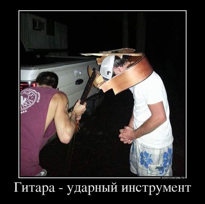 -Да ладно, всё нормально там было. Она, гитара-то - старенькая уже совсем. Мы её когда-то проломили спереди, всё собирались починить, но решили, что проще доломать.