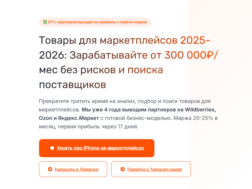 Если вы вбиваете в поиск «товары для маркетплейсов», вы либо новичок, который ищет свою нишу, либо опытный продавец, который хочет масштабироваться. И в 99% случаев вы натыкаетесь на советы в духе «берите то, что быстро покупают». Это тупик. Ликвидность ≠ рентабельность. Я, Добряк, и команда «Mobi Partner» (10 лет на оптовом рынке техники) сейчас сделаем важное деление: товары для маркетплейсов и ТОВАР ДЛЯ МАРКЕТПЛЕЙСОВ. Чувствуете разницу? Второй — это актив, который обеспечивает не просто продажи, а стабильную высокую маржу и предсказуемость. И это — смартфоны Apple. 🔔 ПОДПИСЫВАЙТЕСЬ НА НАШ TELEGRAM-КАНАЛ! Там мы ежедневно выкладываем живые видео с товаром, разборы цен и кейсы партнеров. Без воды, только практика: https://t.me/mobi_partner_optom Логика «куплю дешево, продам на 15% дороже» убивает бизнес на маркетплейсах в 2026. Вы теряетесь среди тысячи таких же, тратите весь бюджет на рекламу и упираетесь в потолок. Формула 2026 года: брать товары с высокой абсолютной маржой. Зара