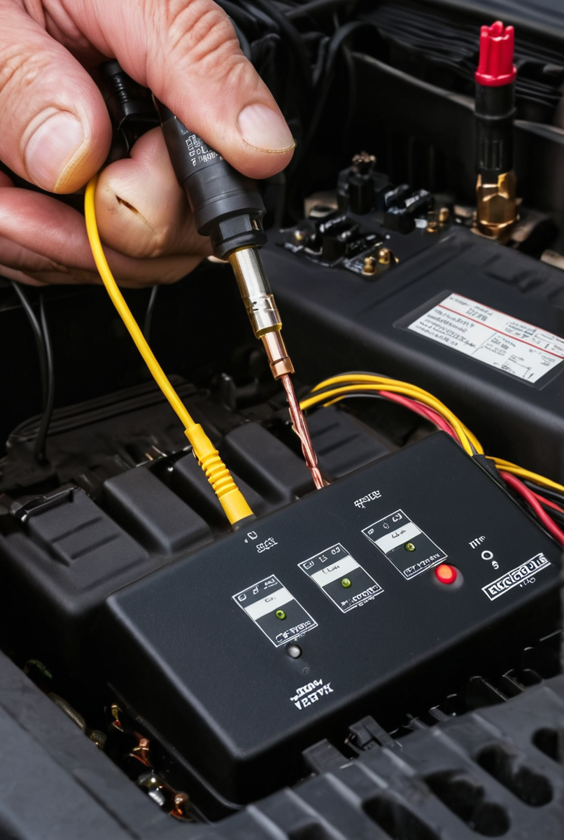 Правильное подключение к бортовой сети — залог успешной диагностики. Сначала обесточивается проверяемая линия, чаще всего путем извлечения ее предохранителя. Затем зажимы генератора («крокодилы») подключаются к контакту в колодке предохранителя и к надежной «массе» кузова. Это гарантирует, что сигнал пойдет исключительно по нужной проводке внутри общего жгута проводов.