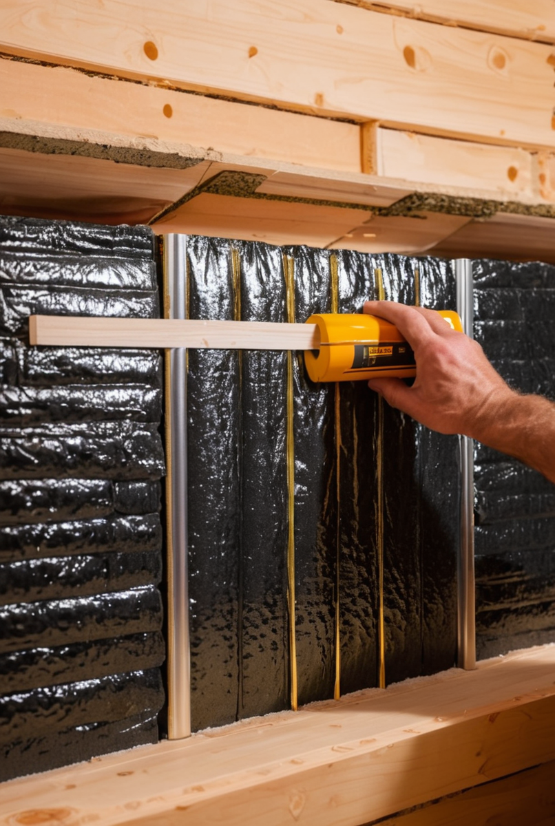 Качественный монтаж пароизоляции — залог долговечности всей конструкции. Специальная мембрана для бани (фольгированная) крепится к стойкам каркаса блестящей стороной внутрь парной. Самый ответственный момент — герметизация стыков. Все нахлесты полотен (не менее 10-15 см) и места примыканий к стенам, полу, потолку, а также точки крепления скобами, необходимо тщательно проклеить. Для этого используется специальный алюминиевый пароизоляционный скотч, выдерживающий высокие температуры. Только так достигается идеальная герметичность. Далее монтируется контррейка, на которую крепится внутренняя отделка парной (вагонка). Этот зазор и герметичный контур обеспечивают максимальное сохранение тепла и быстрый прогрев.