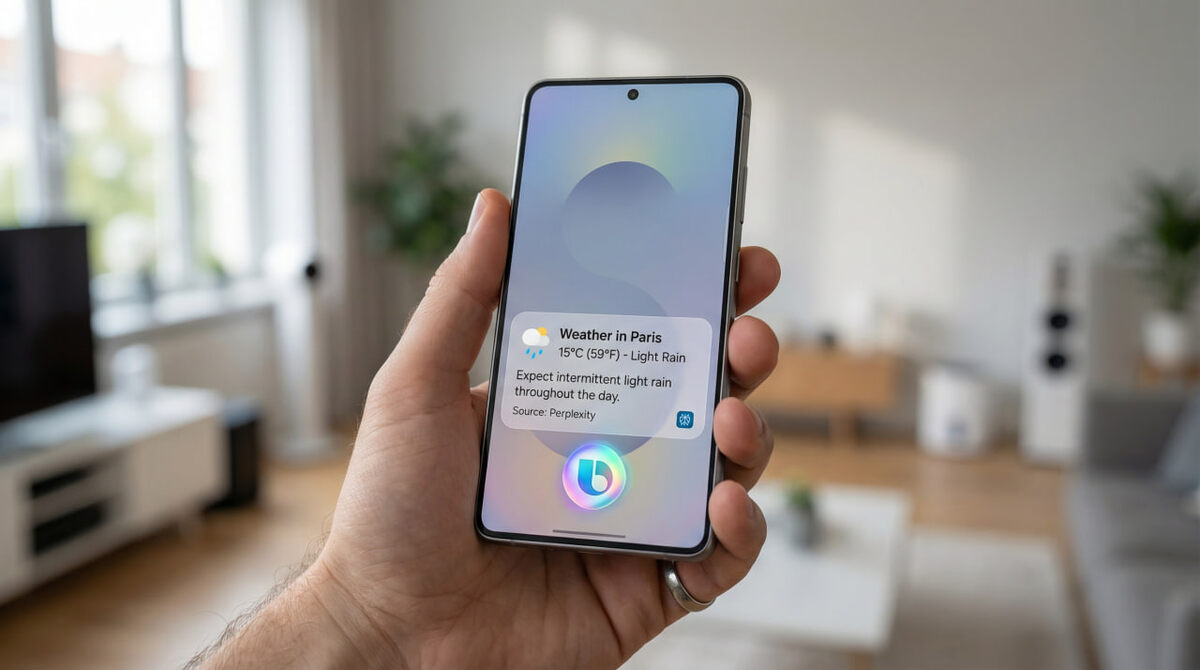 Представьте типичный сценарий. Вы спрашиваете: "Какая погода завтра в Париже?" Старый Bixby показал бы температуру и осадки. Новый - добавит контекст. "Ожидается +8 градусов, облачно с вероятностью дождя 70%. Лучше взять зонт и теплую куртку, особенно утром". В интерфейсе появляется карточка с подробным прогнозом, и в углу скромно указано: источник - Perplexity.
