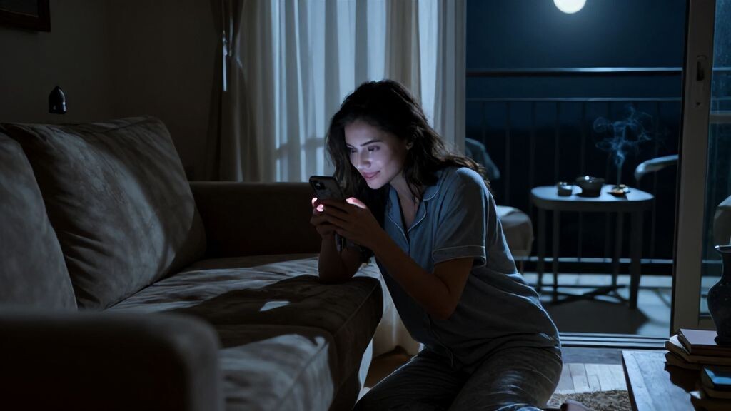 Она повернулась к зеркалу над комодом, поправила волосы и сделала селфи. Улыбка — загадочная, чуть виноватая, но счастливая. Пальцы забегали по экрану, набирая сообщение. Губы шевелились, будто репетируя слова. Потом она поднесла телефон к губам и поцеловала экран — нежно, задержав дыхание. Я смотрел, не моргая, чувствуя, как горло сжимается. Кто там? Кто заставляет её так улыбаться посреди ночи? Она спрятала телефон обратно, встала, потянулась к балконной двери. Вышла, закрыла за собой тихо. Через пару минут вернулась, села на балконный стул в темноте — видно было смутно. Достала сигарету из кармана пижамы, чиркнула зажигалкой. Пламя осветило её профиль: задумчивый взгляд в ночь. Затянулась, выпустила дым кольцами, глядя куда-то вдаль. Потом затушила окурок в пепельнице, которую я прятал, и вернулась в спальню.