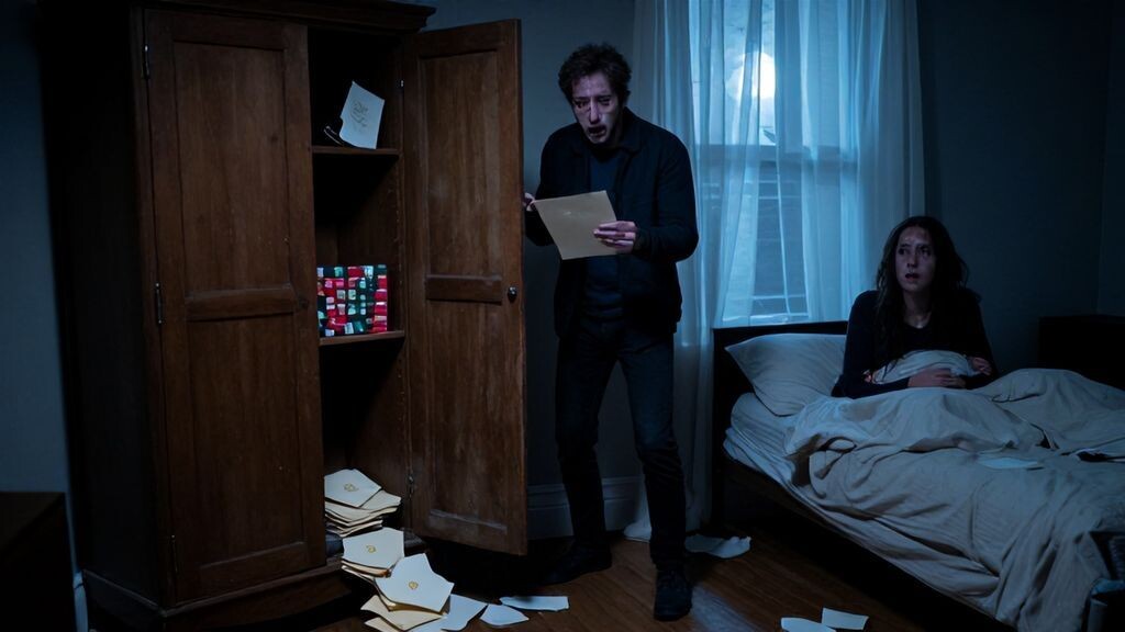 В полумраке спальни, где воздух всегда был густым от аромата ее любимого чая с мятой, я проснулся от резкого крика. Анна сидела на краю кровати, сгорбившись, ее тонкие пальцы вцепились в край простыни, словно спасательный круг. Лунный свет пробивался сквозь неплотно задернутые шторы, отбрасывая серебристые блики на ее бледное лицо, искаженное ужасом. "Нет, только не там! Он найдет!" – вырвалось из ее губ хриплым шепотом, эхом отдаваясь в тишине ночи. Я потянулся к ней, сердце колотилось, как барабан в груди, но она не реагировала, уставившись в пустоту. Ее губы шевелились, бормоча что-то неразборчивое, а потом четко: "Шкаф… верхняя полка… за коробкой с гирляндой…"