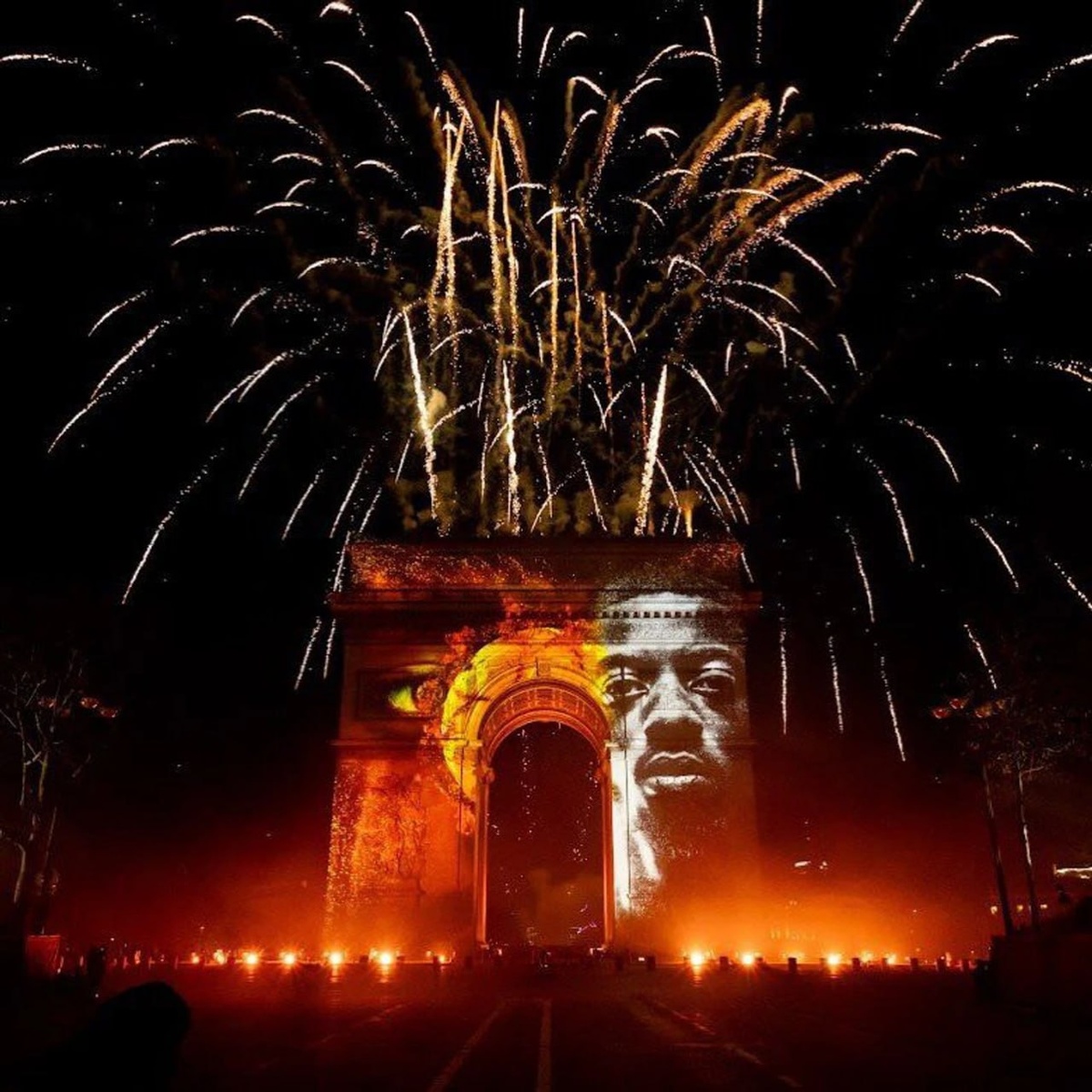 Лицо Дембеле спроецировали на Триумфальную арку Парижа во время новогоднего салюта
