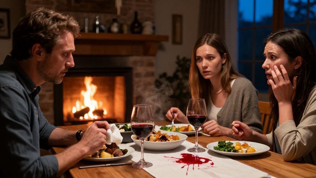 Старый дубовый стол в гостиной скрипел под тяжестью тарелок с жареной картошкой и свежим салатом из огурцов, пропитанным сметаной. Аромат специй витал в воздухе, смешиваясь с запахом нагретого дерева от камина, где потрескивали поленья. Лена сидела напротив меня, её пальцы нервно теребили край салфетки, а глаза то и дело скользили к бокалу с красным вином. Ужин проходил как обычно: мама рассказывала о соседях, отец жевал молча, а двоюродная сестра Маша, приехавшая в гости из Питера, уже наливала себе третью порцию.