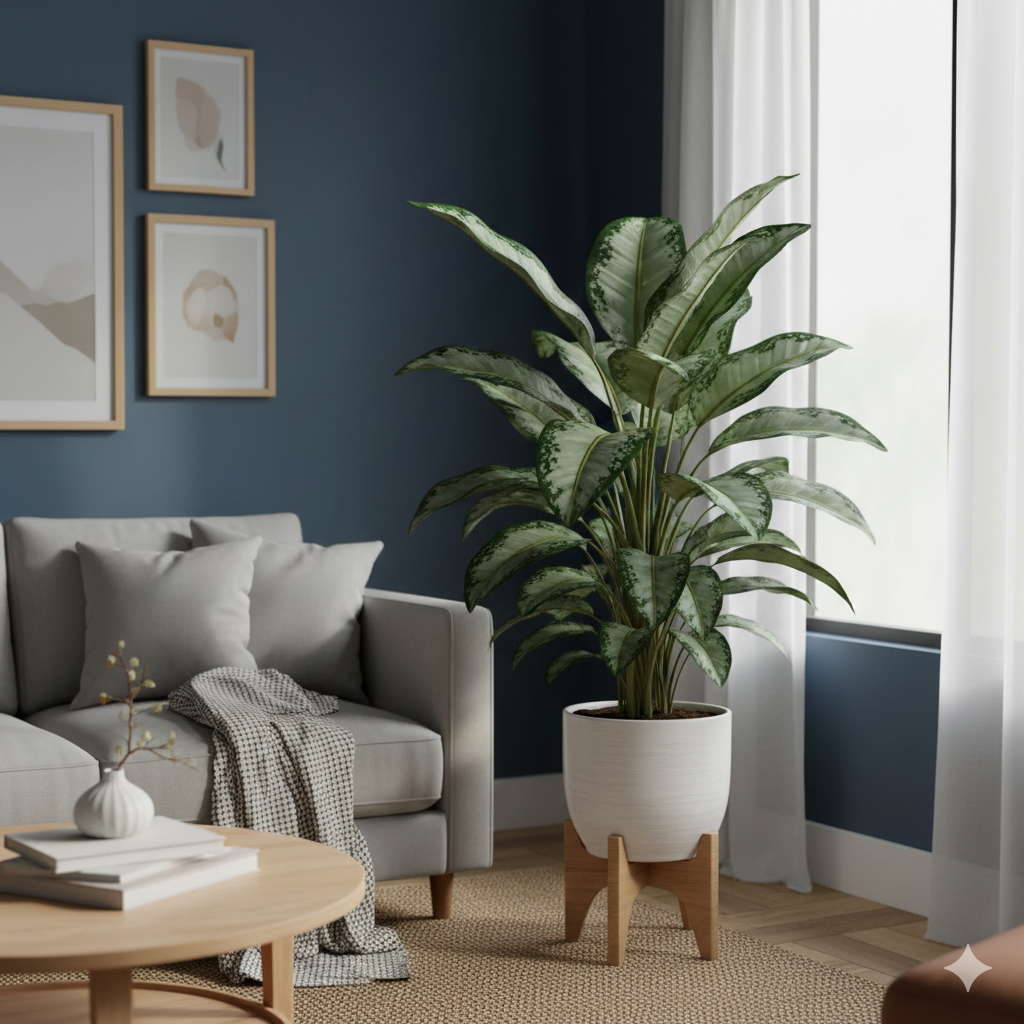 - Silver Bay (Сильвер Бей): абсолютный чемпион по выживанию. У неё огромные, мощные листья с серебристым пятном в центре. Она может стоять в глубине комнаты и всё равно будет выглядеть как королева. Если хотите «зелёную стену» без хлопот — это она.