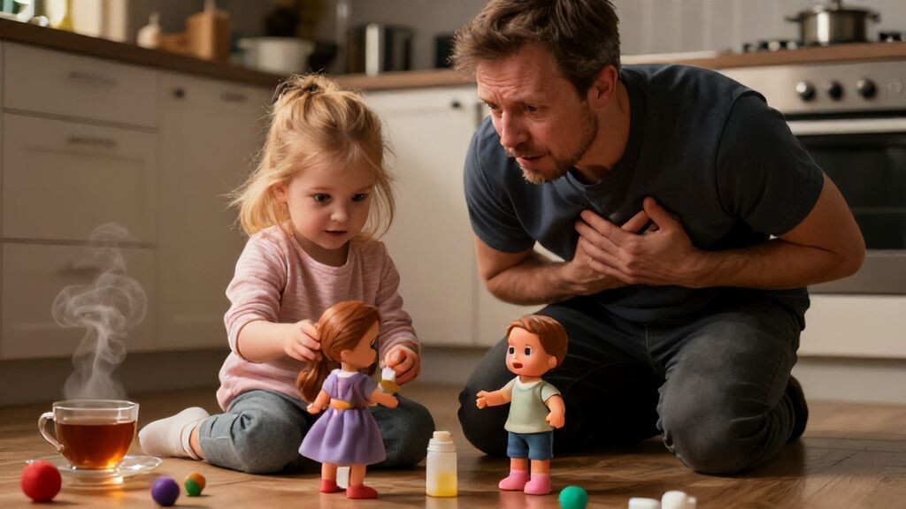 Теплый вечерний свет из окна кухни падал на потертый линолеум, где Лиззи расставляла своих кукол в ряд. Я сидел за столом, помешивая остывший чай, и наблюдал, как ее маленькие пальчики ловко двигают фигурками. Воздух пропитался ароматом свежезаваренного чая с мятой и легким запахом пластика от игрушек. Лиззи, моя четырехлетняя радость, хмурила бровки, сосредоточенно бормоча под нос.