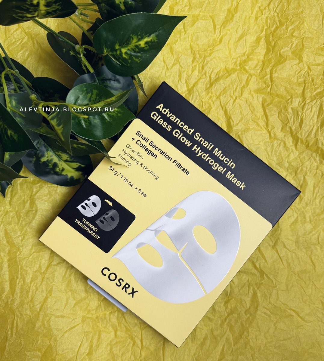 С Новым годом, друзья! Начну его с набора отличных гидрогелевых масок, которые помогут быстро "поставить" лицо на место. У COSRX в линейке - 5 вариантов, я решила начать знакомство с улиточного. Заказать можно: - на joom.ru (бесплатная доставка из Кореи) - на goldapple.ru на iHerb* - CosRx, Advanced Snail Mucin Glass Glow Hydrogel Beauty Mask, 3 шт., 34 г (1,19 унции) * скидка по промокоду NAYDENOVA Производитель обещает всё сразу - от снятия отечности и выравнивания тона до повышения упругости и эффекта "стеклянной кожи". И, глядя на состав, ему веришь. Смотрите, нам положили - 25% фильтрат муцина улитки (выработка собственного коллагена и эластина, регенерация кожи, уменьшение воспаления и раздражения), глюконолактон (деликатное удаление ороговевших клеток), низкомолекулярный гидролизованный коллаген (заполнение морщин и упругость), 5 видов гиалуроновой кислоты и 5 церамидов (глубокое увлажнение и восстановление защитного барьера), ниацинамид (выравнивание тона) и аденозин (клинич