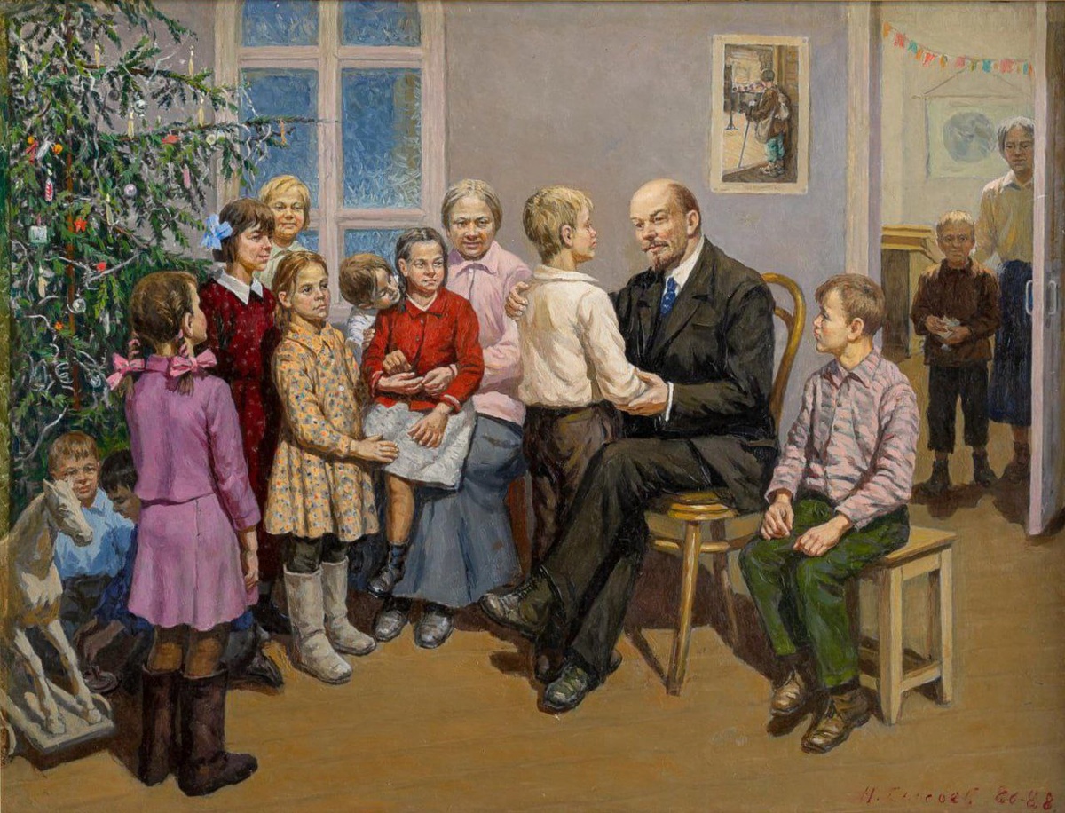 ! «В.И. Ленин и Н.К. Крупская у новогодней ёлки в Сокольниках». Картина Н. А. Сысоева, 1986-1988 гг. Лучший подарок ребёнку – детство без капитализма. Спасибо большевикам и товарищу Ленину за такое детство.