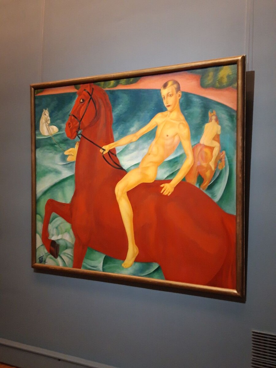 2026-й – год Красной Огненной Лошади. Несмотря на то что это классификация по восточному календарю, в нашем культурном коде такая лошадка присутствует уже 114 лет! Точнее сказать, это красный конь, купание коего и происходит на картине Кузьмы Петрова-Водкина, написанной в 1912 году. Надо сказать, что это копытное давно «ускакало» с живописного полотна на постеры, блокноты, магниты, стикеры, футболки, худи… Картина встречает гостей Третьяковской галереи на Крымском валу, 10, сразу же при входе в зал «Искусство XX века». В основу картины легла реальная сцена купания лошадей мальчишками на Волге. Прототипами героев стали двоюродный брат художника Шура и конь Мальчик. Кузьма Сергеевич использовал чистые, яркие цвета, отказываясь от смешивания и рефлексов ради большей выразительности. Всадник напоминает традиционный образ Георгия Победоносца — символ победы добра над злом. А у вас есть любимая картина? А фото с ней? Делитесь настроением в комментариях!
