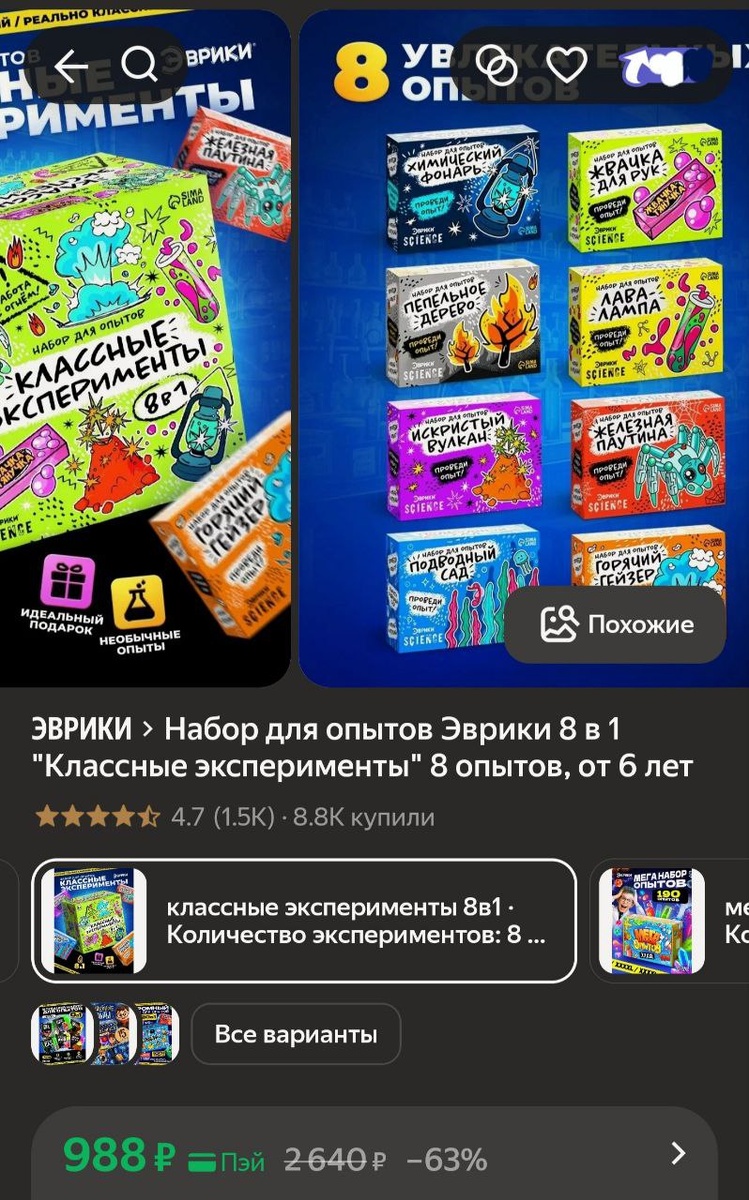 π»ΠΠ°Π±ΠΎΡ Π΄Π»Ρ ΠΎΠΏΡΡΠΎΠ² ΠΠ²ΡΠΈΠΊΠΈ 8 Π² 1 "ΠΠ»Π°ΡΡΠ½ΡΠ΅ ΡΠΊΡΠΏΠ΅ΡΠΈΠΌΠ΅Π½ΡΡ" 8 ΠΎΠΏΡΡΠΎΠ², ΠΎΡ 6 Π»Π΅Ρ - 988Ρ
