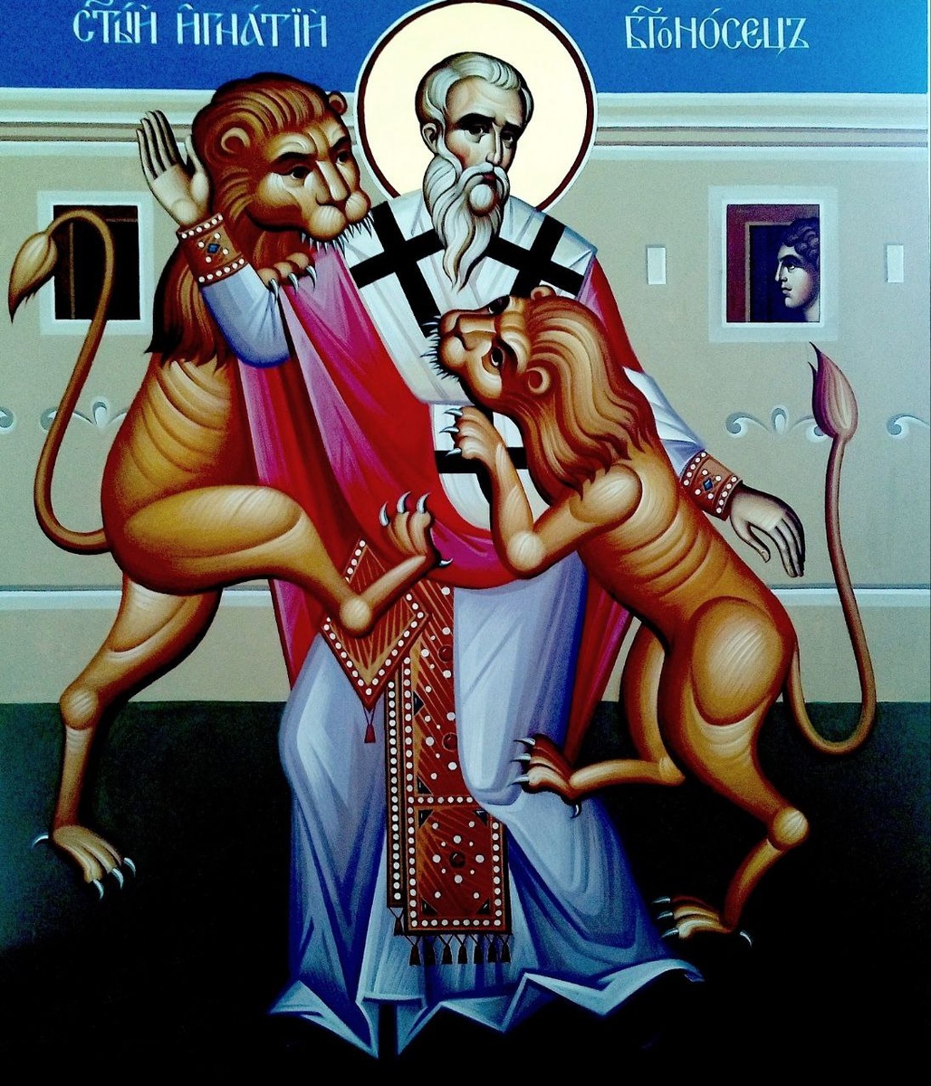 Святой Игнатий Богоносец имеет особое значение для нас, потому что он близко общался с апостолами, непосредственно от них слышал христианское учение и был свидетелем распространения и развития первых христианских общин. В своих семи письмах он запечатлел для нас апостольскую эпоху. Святой Игнатий родился в Сирии в последние годы жизни Спасителя. Его жизнеописание повествует, что он был тем отроком, которого Господь взял на руки и сказал: «Если не обратитесь и не будете как дети, не войдете в Царство Небесное» (Мф.18:3). Богоносцем он назван потому, что, крепко любя Господа, он как бы носил Его в своем сердце. Он был учеником апостола и евангелиста Иоанна Богослова, а так же был особенно близок к апостолу Петру и сопровождал его в некоторых его апостольских путешествиях. Незадолго до разрушения Иерусалима в 70 году, скончался Евод, один из семидесяти учеников Христовых, и его преемником на Антиохийской кафедре (в столице Сирии) стал Игнатий. Святой Игнатий управлял Антиохийской церков