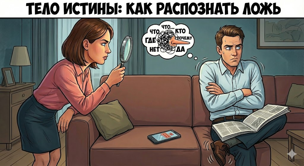 Давайте начнем с хорошей новости: если вам кажется, что ваш партнер что - то скрывает, скорее всего, он делает это из рук вон плохо. Большинство людей - никудышные лжецы. Скорее всего, вы не замужем за патологическим лжецом, чья потребность врать продиктована психическим расстройством, а его мастерство доведено до совершенства. Обычный человек, когда пытается скрыть правду, испытывает колоссальное внутреннее напряжение, и именно оно прорывается наружу через мелкие жесты, мимику и интонации. Чтобы разобраться, как понять что муж врет, нужно научиться смотреть не на то, ЧТО он говорит, а на то, КАК он это делает. Мы называем это "Телом истины" - это своего рода окно в подсознание вашего партнера.