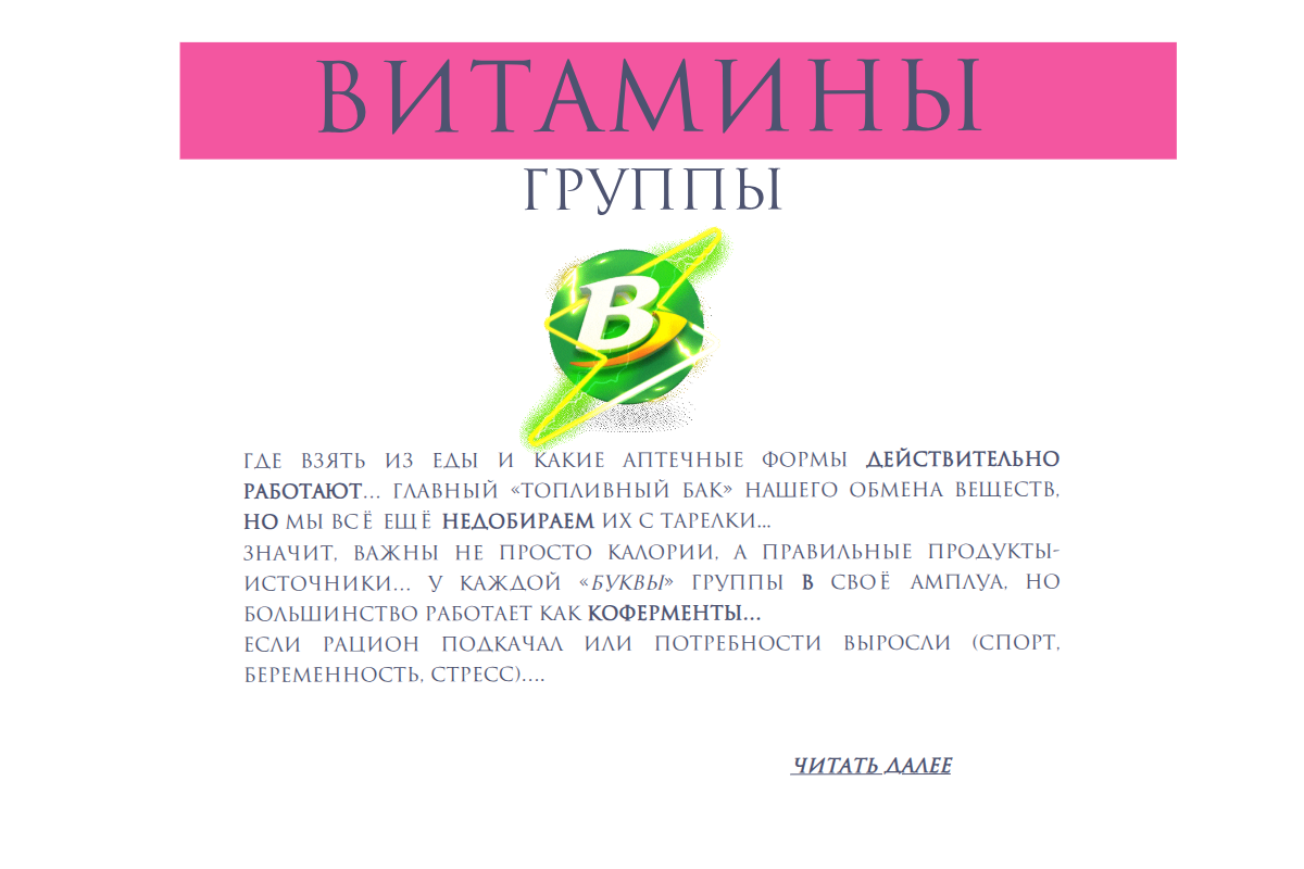 Ищешь витамины группы В баночках? Сначала проверь, не лежат ли они у тебя в холодильнике или на полке с крупами. Витамины группы В главный «топливный бак» нашего обмена веществ, но мы всё ещё недобираем их с тарелки. Утренний туман в голове, трещинки в уголках губ, онемевшие пальцы, знакомо? В исследовании Национального института здоровья США (NIH, 2022, PMID: 35123417) 28 % людей с подобными жалобами имели скрытый дефицит хотя бы одного В-витамина, хотя ели «обычную» еду. Значит, важно не просто калории, а правильные продукты-источники. У каждой «буквы» #группыВ своё амплуа, но большинство работает как коферменты: запускают энергообмен, регенерацию нервов и контроль гомоцистеина (метаанализ Nutrients, 2021, DOI: 10.3390/nu13113911). Еда способна закрыть суточную потребность, а таблетки исправить пробелы, если рацион подкачал или потребности выросли (спорт, беременность, стресс). 1. Закрываем базу едой: цельные злаки, мясо, рыба, бобовые, яйца, зелень. 2. При симптомах или жёстких огра