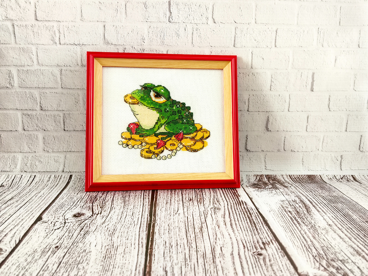 Новый год наступил, а итоги за прошлый год я так до сих пор не подвела. Так что исправляюсь и в первую очередь расскажу об итогах вышивальных. Самой первой законченной работой года стала "Денежная жаба" от фирмы "Риолис". Вышивалась она легко, и почти сразу же я её оформила