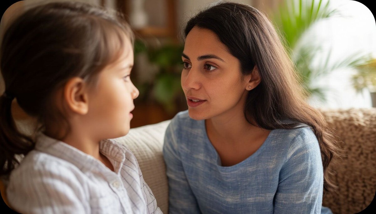 - ТОН решает всё 🗣️ Говорите спокойным, уверенным тоном, без нот раздражения или усталости. Ребёнок считывает интонацию быстрее, чем смысл слов, и если слышит уверенность, он скорее откликнется.