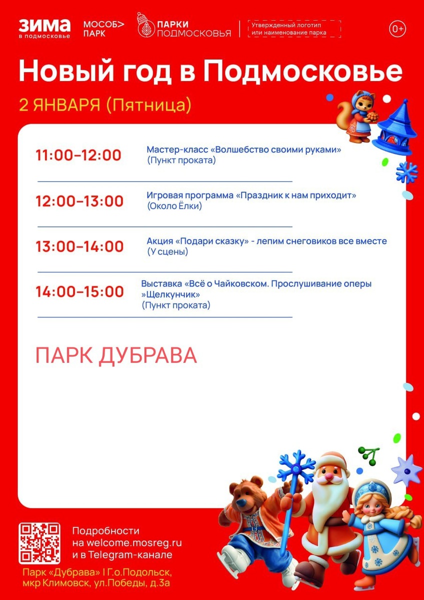 ✨ Сегодня в парках для Вас приготовили зажигательные мероприятия В парках 🎄 ДУБРАВА и 🎄 им. В. ТАЛАЛИХИНА 📆 02.01.2026 💰 Вход свободный❗️ ⭐Поддержать канал голосом 🍰Где поесть в Подольске ✅ Мероприятия Подольск https://dzen.ru/id/66ed500f7b5671493eca3fd6 http://vk.com/podolsk_events http://dzen.ru/podolsk_events