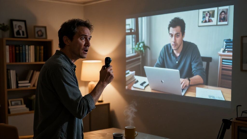 Изображение заполнило стену: наша гостиной, снятая с угла, где висит полка с книгами. Камера наблюдения? У нас нет такой. На кадре — я, в той же рубашке в клетку, склонившийся над ноутбуком за обеденным столом. Клавиши постукивают ритмично, экран светит в лицо. За кадром — знакомый голос Маши, тихий, но отчетливый: "Да, он здесь. Нет, сегодня не получится. Он слишком долго работает. Завтра, я уверена, он уедет на это совещание. Приезжай к 11". Сердце ухнуло в пятки. Прошлая среда. Я помню: утром позвонили из офиса, совещание отменили в последний момент. Я остался дома, радовался неожиданному дню. А в 11 утра раздался звонок в дверь — курьер с букетом алых роз. Огромным, в целлофане, с открыткой без подписи. Маша приняла, улыбнулась рассеянно, поставила в вазу на кухне. "Наверное, ошибка", — сказала она тогда. Теперь я знал: она ждала кого-то другого.