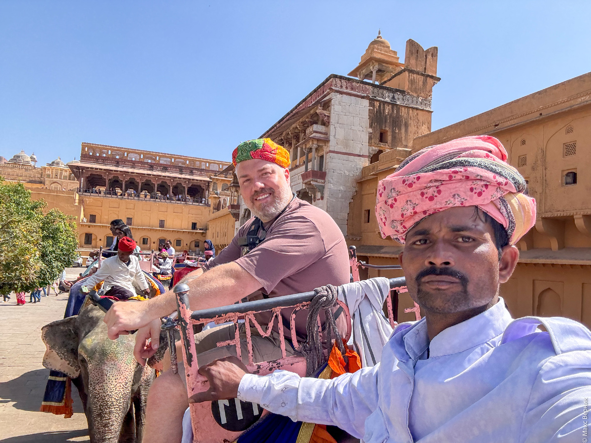 Первым в списке был Форт Амбер, информацией о котором я наполнил свой кузов мозга под завязку. Снаружи грозный, цвета раскалённого песка, а внутри — неожиданно нежный и изящный. Форт пережил всё: и падишахов, и махараджей, и англичан, но потихоньку сдавался под наплывом туристов, утопая снаружи в слоновьем кале. Я мог подняться туда как простой торговый дервиш, а въехал на парадном слоне с водителем, который всю дорогу меня фотографировал, а потом виновато попросил доллар.