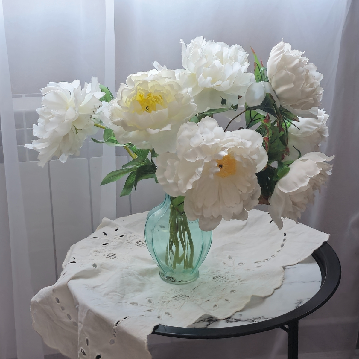 Ключевая задача: Создать иллюзию белого за счет температурного контраста: теплые (желтоватые, оранжеватые) тени на пионах против холодного, светлого фона. Вместо серо-лилового, мы создадим теплую, но прозрачную основу, которая будет служить нам для замешивания самых темных, но теплых теней. Смешайте Марс с небольшим количеством Берлинской лазури.Цель: Добиться прозрачного, приглушенного коричневато-серого тона.