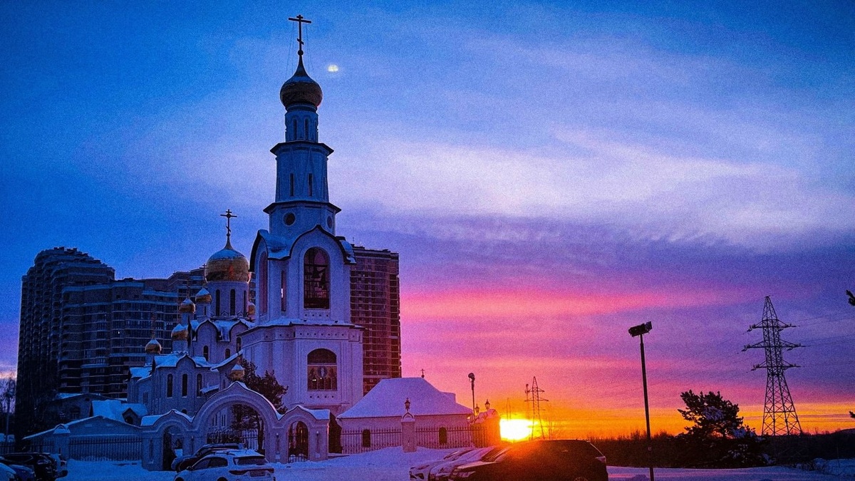 #Сургут. Прогулка на рассвете к кафедральному Собору Преображения Господня 🌅