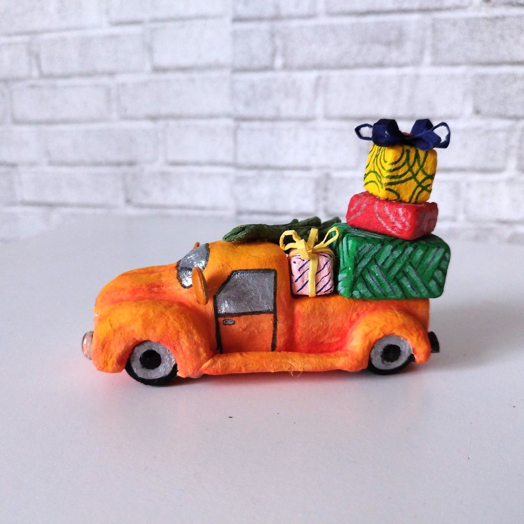Завершает наш праздничный пробег грузовик с цветом мандаринового настроения, груженый подарками и елочкой