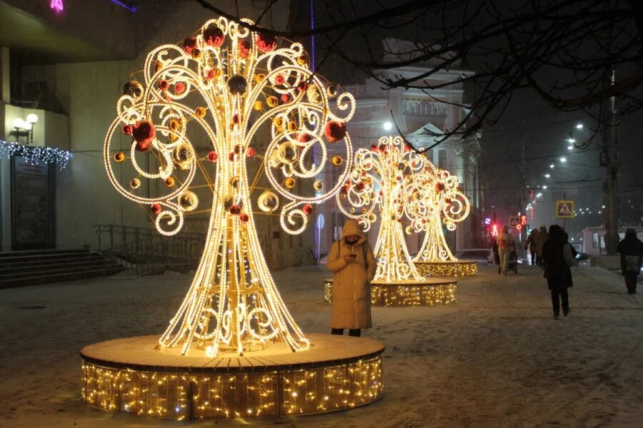 Чтобы почувствовать Новый год, стоит выйти на улицы Калуги с наступлением ранних зимних сумерек. В это время город преображается. Улицы, парки и скверы залиты мягким светом гирлянд, и в воздухе витает праздничное настроение. Всего в городе установили 33 ёлки. Главная - на площади Старый Торг. В городском парке светятся фигуры Деда Мороза, Снегурочки, медведей, матрёшек и «Трёх котов». А витрины магазинов рассказывают свои новогодние истории. По центральным улицам неспеша гуляют семьи с горячим какао, дети бегут на горку, а у Гостиных рядов калужане катаются на катке. В сквере им. Ленина развернулось праздничное пространство «Рождество на Старом Торге»: живая ёлка, домики с едой, горка для детей, музыка и уют — всё для настоящего праздника. На Театральной улице работает новогодняя ярмарка с сувенирами, сладостями, праздничными продуктами. Еще одной интересное новогоднее место - сквер Чижевского. Здесь стартовала космическая ярмарка с авторским подарками, горячими напитками и празднично