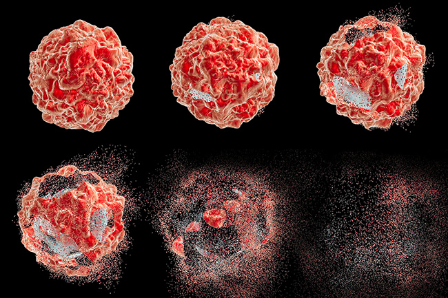 Мембрана погибшей клетки остается целой, содержимое клетки не покидает ее границ, а воспалительная реакция не активируется.