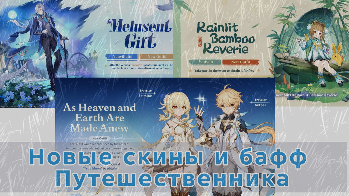 Разработчики Genshin Impact официально показали новые образы для Нёвиллета и Яо Яо, а также подтвердили важную информацию о бесплатных скинах для Путешественников.